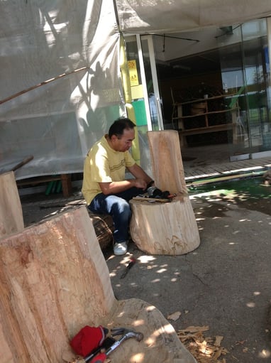 お店では、現在、店内の掃除や、木のイスを手作りしています(^^)